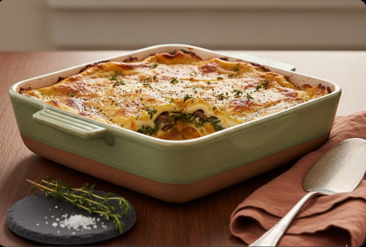 Herbst-Lasagne mit Kürbis, Pilzen & Spinat