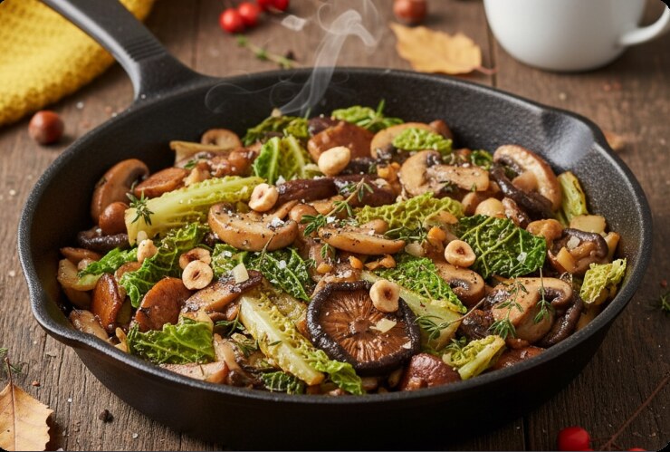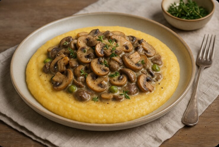 Tofu-Steak mit Pilzrahm und Pastinaken