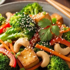 Brokkoli-Cashewnuss-Pfanne mit Tofu