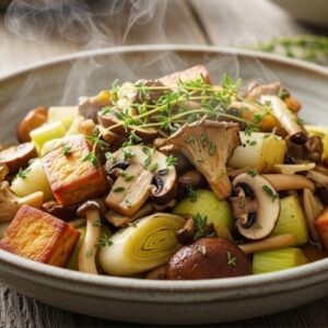 Lauch-Champignon-Pfanne mit Räuchertofu