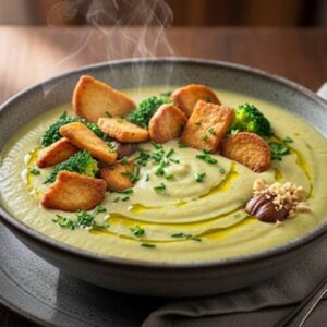 Maronen-Brokkoli-Creme mit Tofu-Croutons