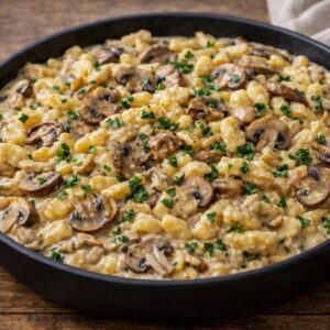 Winterliche Spätzli-Pfanne mit Pilzrahm