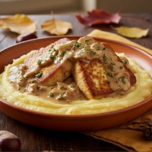 Tofu-Steak mit Pilzrahm und Pastinaken