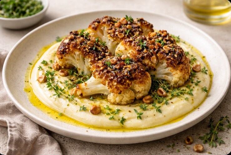 Gerösteter Blumenkohl mit Kartoffel-Sellerie