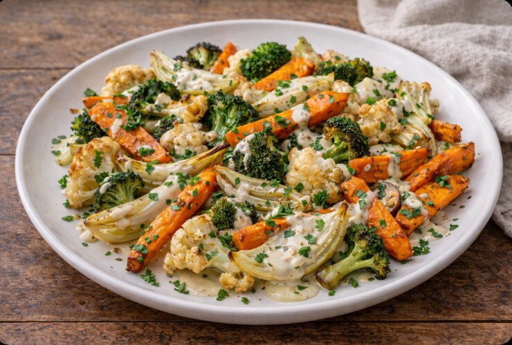 Ofengemüse mit Tahini-Zitronen-Sauce