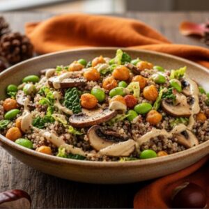 Quinoa-Pilz-Bowl mit Wirz und Kichererbsen